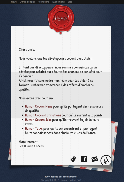 C’est parce notre vision est au centre de ce que nous faisons que vous avons décidé d’utiliser cette structure pour décrire ce que nous faisons sur notre page d’accueil humancoders.com.