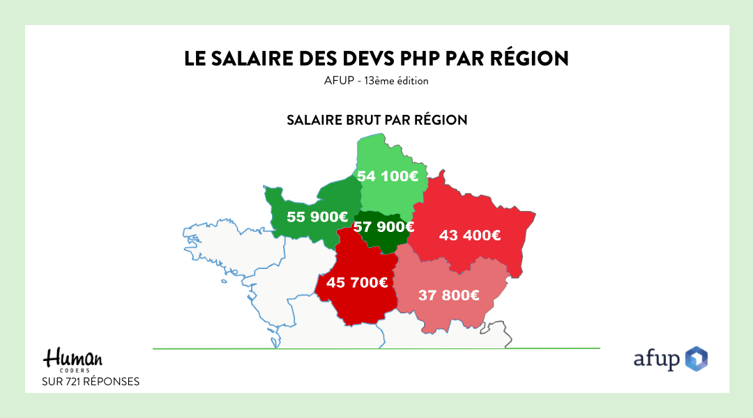 - C’est en Île-de-France que se situe le salaire brut annuel le plus élevé avec un montant de 57 900€. La région est suivie par la Normandie avec 55 900€ et enfin la région Nord-Pas-de-Calais-Picardie dont le salaire brut annuel affiche 54 100€.